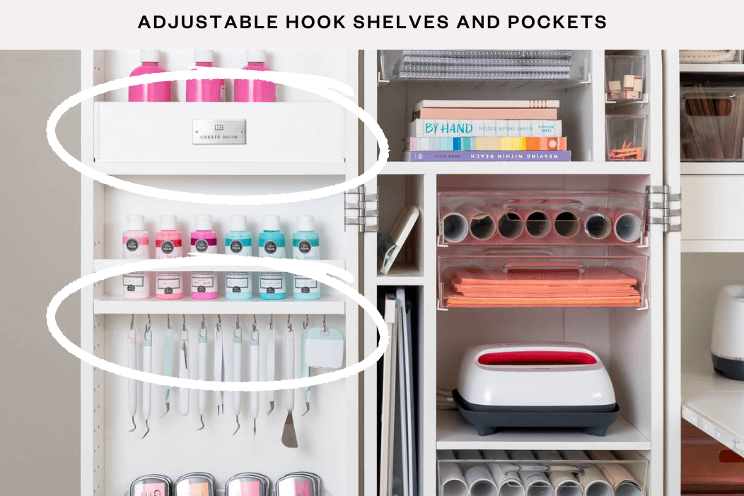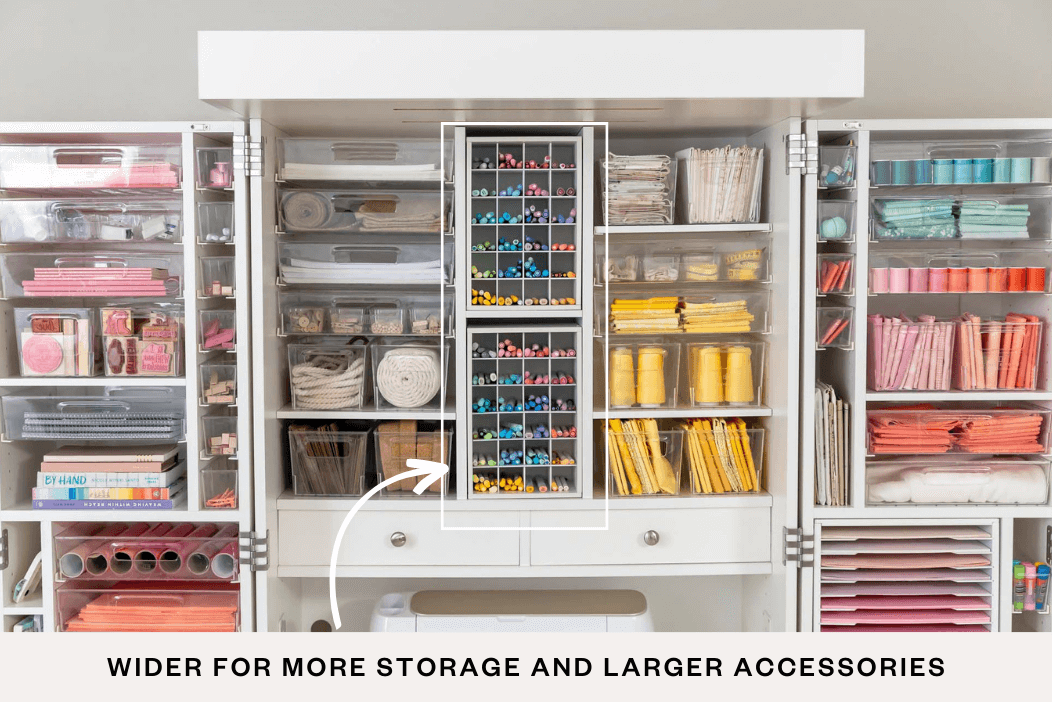 24 hooks to keep your tools within reach. 4 rods are ideal for washi tape and ribbon.