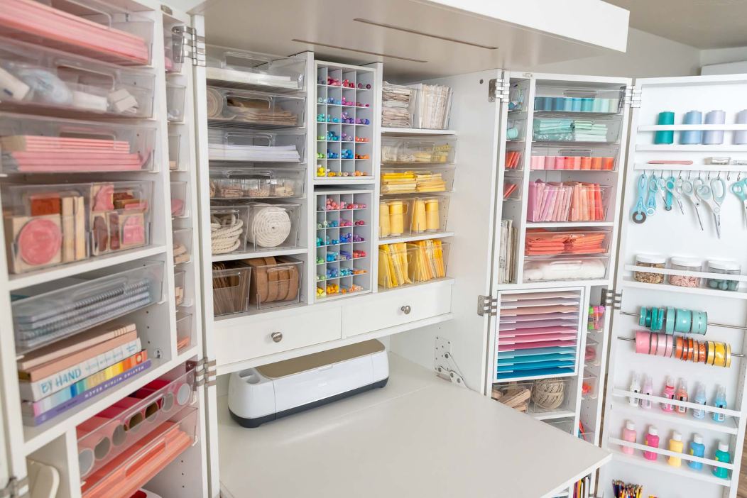 Fast-track your creativity with an easy fold table and all your supplies in view and within reach.