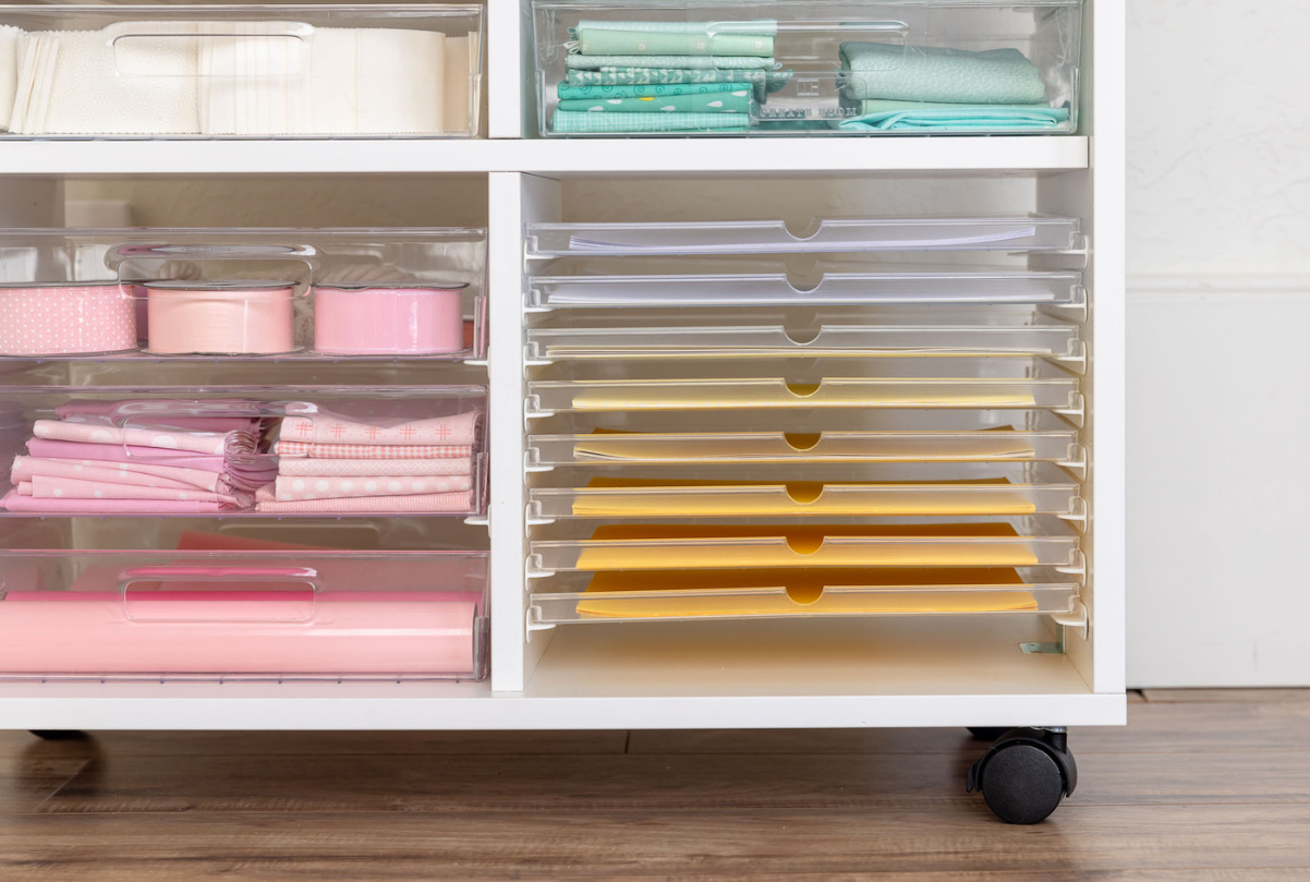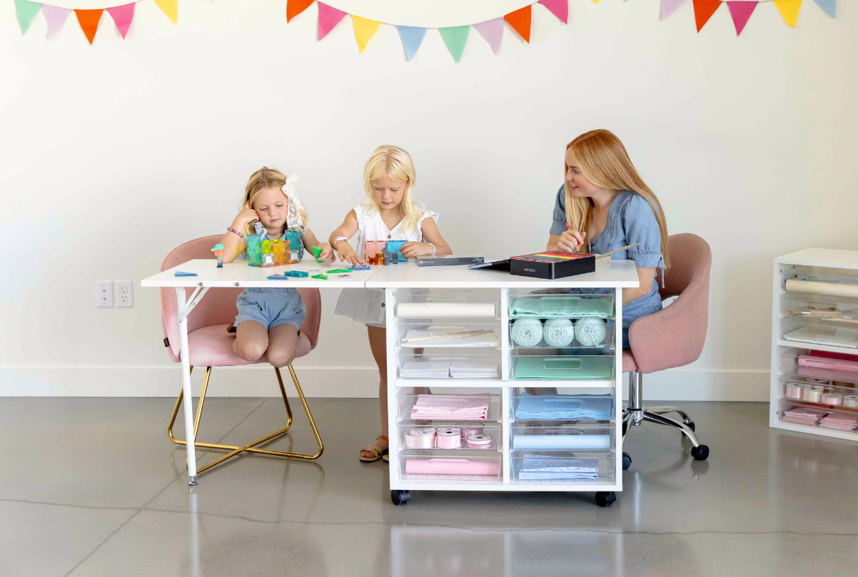Bring your crafting supplies wherever inspiration strikes with the DreamCart 2 – the ideal mobile crafting companion. Navigate confidently throughout your space with its maneuverable design. With an extendable table leaf maximizing crafting space, seamlessly connect it to your DreamBox 2 for enhanced storage and table space.